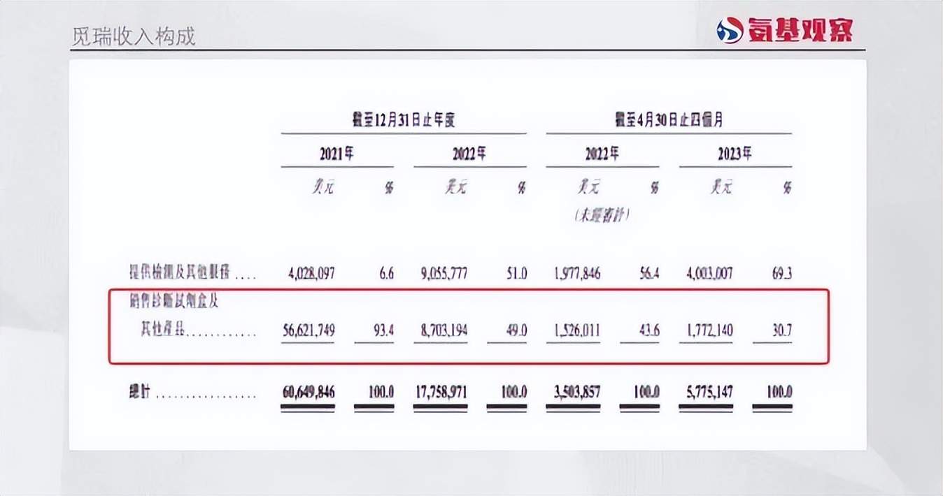 也正因此,在觅瑞的招股书中,诊断试剂盒及其它产品的收入主要是GASTROClear™。2022年前4个月,该产品在新加坡的销售额,大约是177万美金,折合1266万人民币。