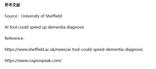 “通过加速评估,CognoSpeak 系统可以改变诊断失智症和其他记忆障碍的方式。这也将解放临床医师的宝贵时间,并意味着需要专科护理的人可以尽快获得专科护理。”