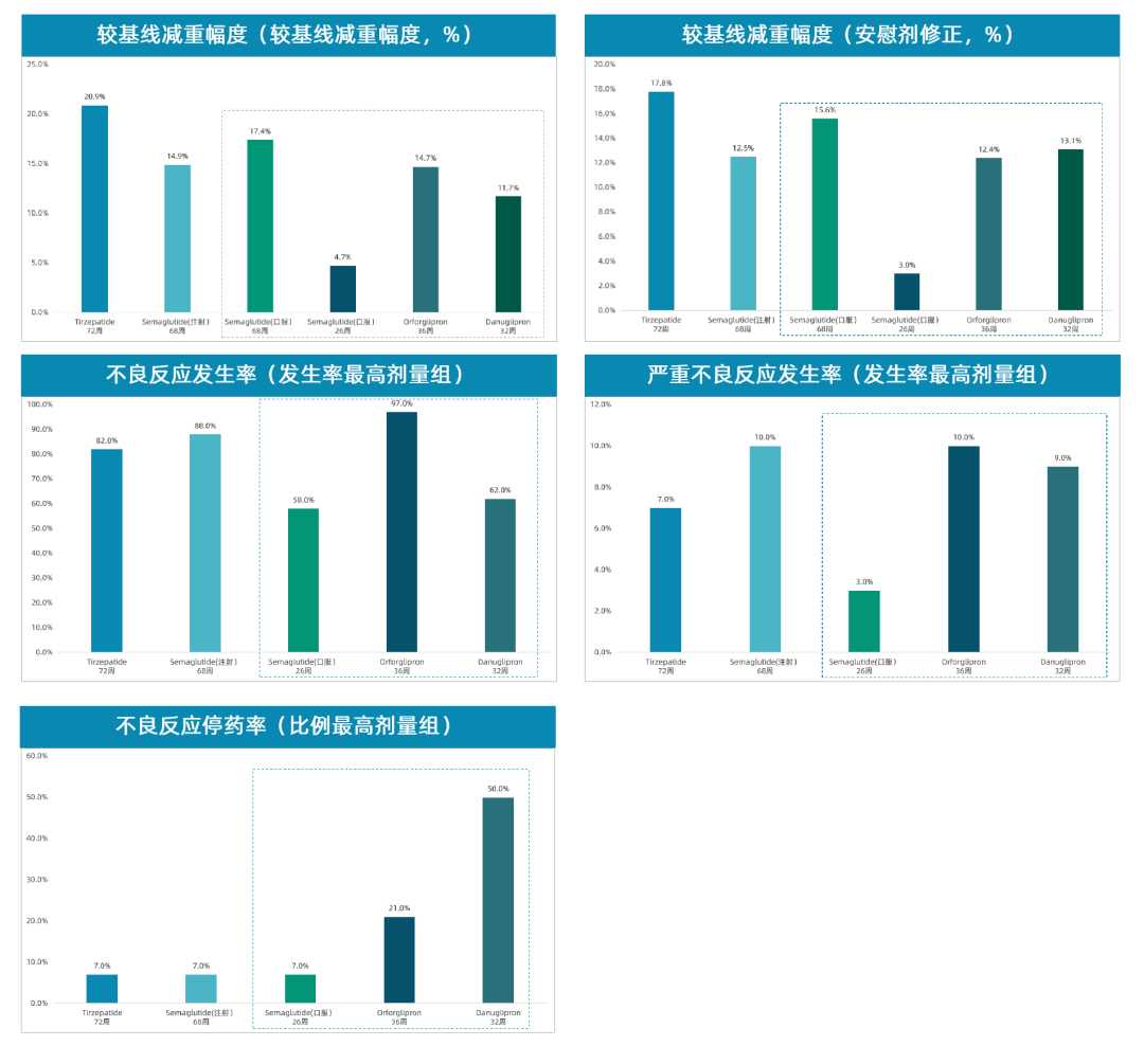 图3. GLP-1药物临床数据横向对比