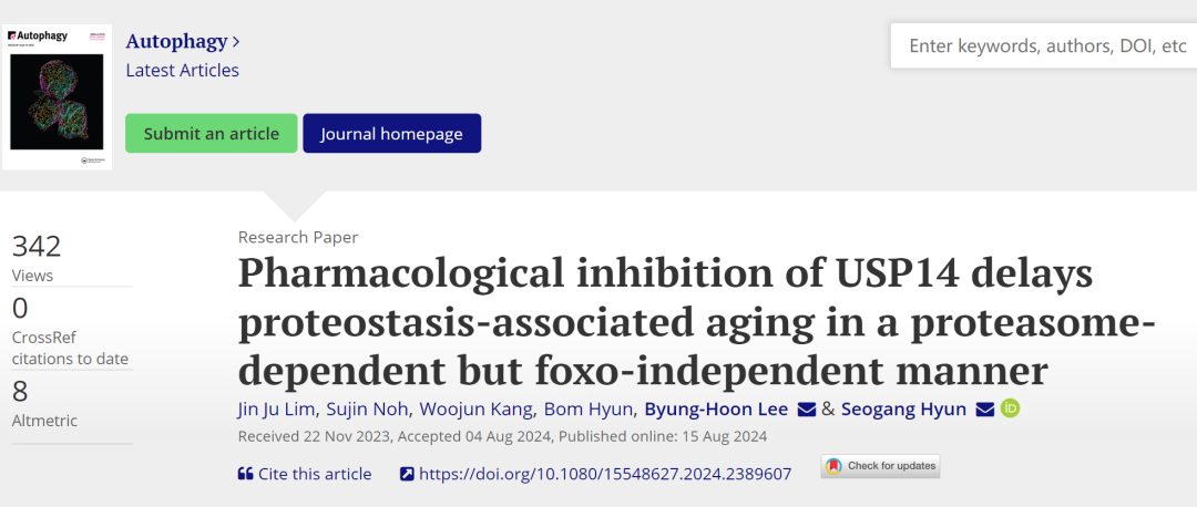 Jin Ju Lim et al, Pharmacological inhibition of USP14 delays proteostasis-associated aging in a proteasome-dependent but foxo-independent manner, Autophagy (2024). DOI: 10.1080/15548627.2024.2389607