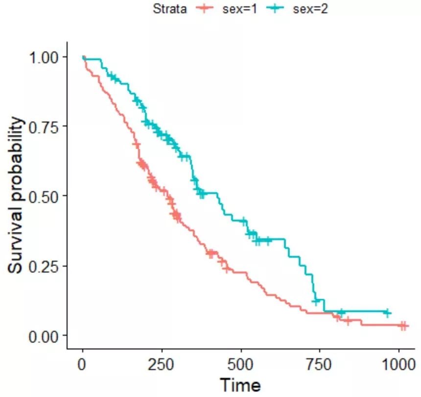 fit<- survfit(Surv(time, status) ~ sex, data = lung)