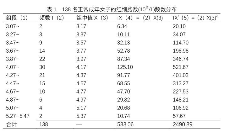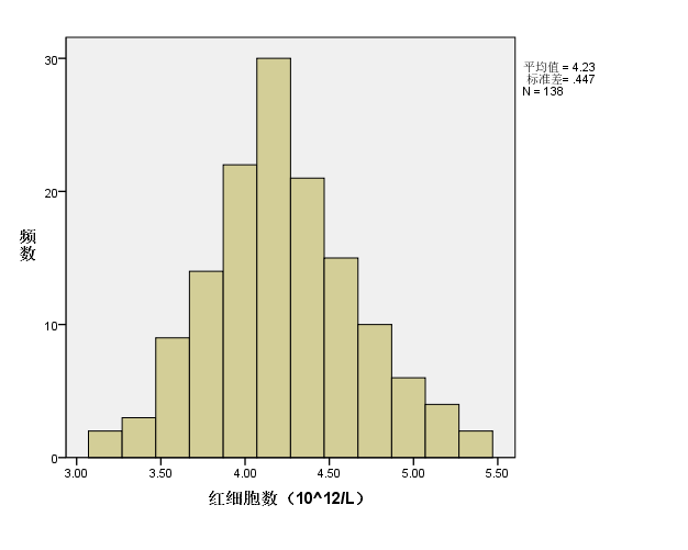 图1:138名正常成年女子的红细胞数频数分布直方图