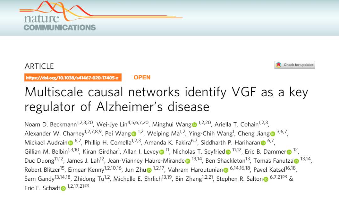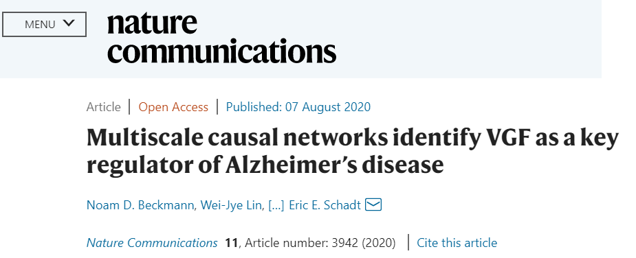 Beckmann, N.D., Lin, W., Wang, M. et al. Multiscale causal networks identify VGF as a key regulator of Alzheimer’s disease. Nat Commun 11, 3942 (2020). https://doi.org/10.1038/s41467-020-17405-z