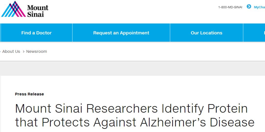 Mount Sinai Researchers Identify Protein that Protects Against Alzheimer’s Disease