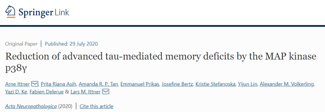 Ittner, A., Asih, P.R., Tan, A.R.P. et al. Reduction of advanced tau-mediated memory deficits by the MAP kinase p38γ. Acta Neuropathol (2020). https://doi.org/10.1007/s00401-020-02191-1