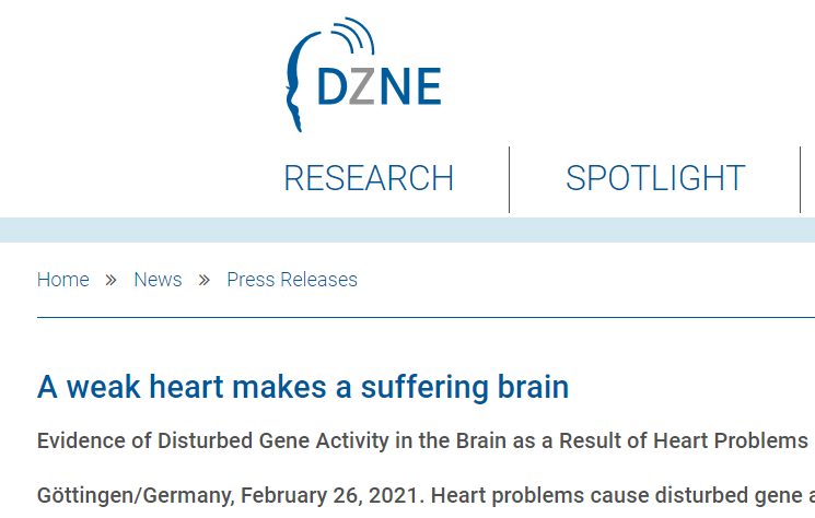 心脏问题会导致大脑记忆中心的基因活性受到干扰,从而引起认知缺陷。德国神经退行性疾病中心(DZNE),哥廷根大学医学中心(UMG)和德国心血管研究中心(DZHK)的研究人员根据实验室研究得出了这一结论。