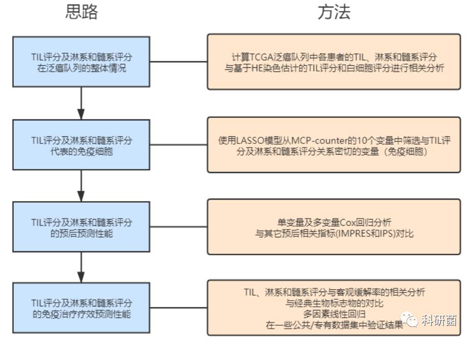 免疫治疗的迅速发展为广大癌症患者带来了福音,但目前被广泛用于预测免疫治疗疗效的方法仍然只有基于PD-L1的免疫组化评估,在目前的临床应用中还远远不够。在本篇学习笔记中提出了一个包括40个基因的肿瘤浸润淋巴细胞(TIL)signature评分,希望通过深入探究TIL评分以及其中包含的淋系和髓系评分在各类癌症中的特征以及预后预测性能,为免疫治疗相关分子标记的进一步的研究奠定基础。