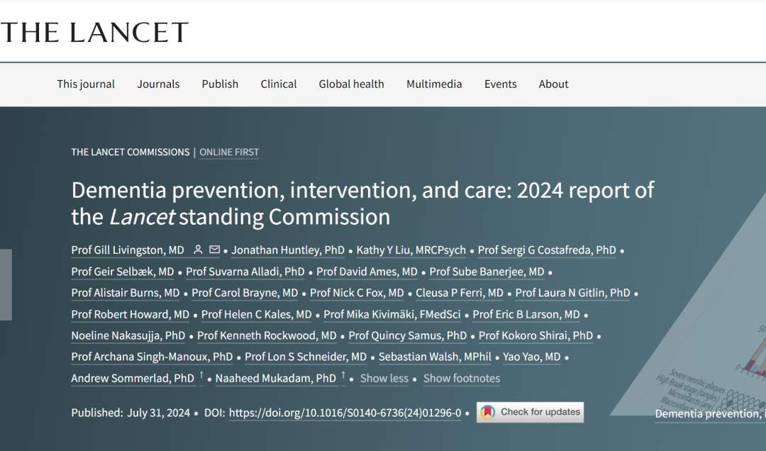[1].Dementia prevention, intervention, and care: 2024 report of the Lancet standing Commission, The Lancet (2024). DOI: 10.1016/S0140-6736(24)01296-0 , www.thelancet.com/journals/lan … (24)00117-X/fulltext