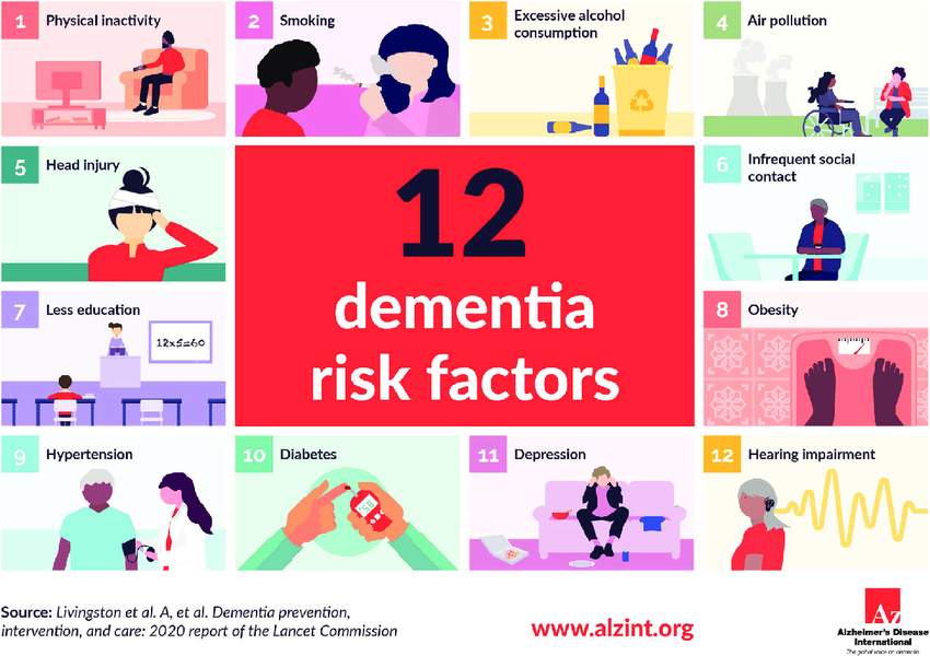 这两个新风险因素是在《柳叶刀》委员会 2020 年确定的 12 个风险因素(教育水平低、听力障碍、高血压、吸烟、肥胖、抑郁症、身体活动不足、糖尿病、过量饮酒、创伤性脑损伤[TBI]、空气污染和社会隔离)之外增加的,这 12 个风险因素与 40% 的失智症病例相关。