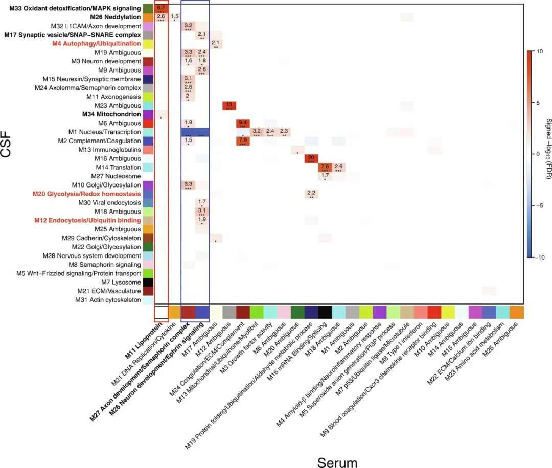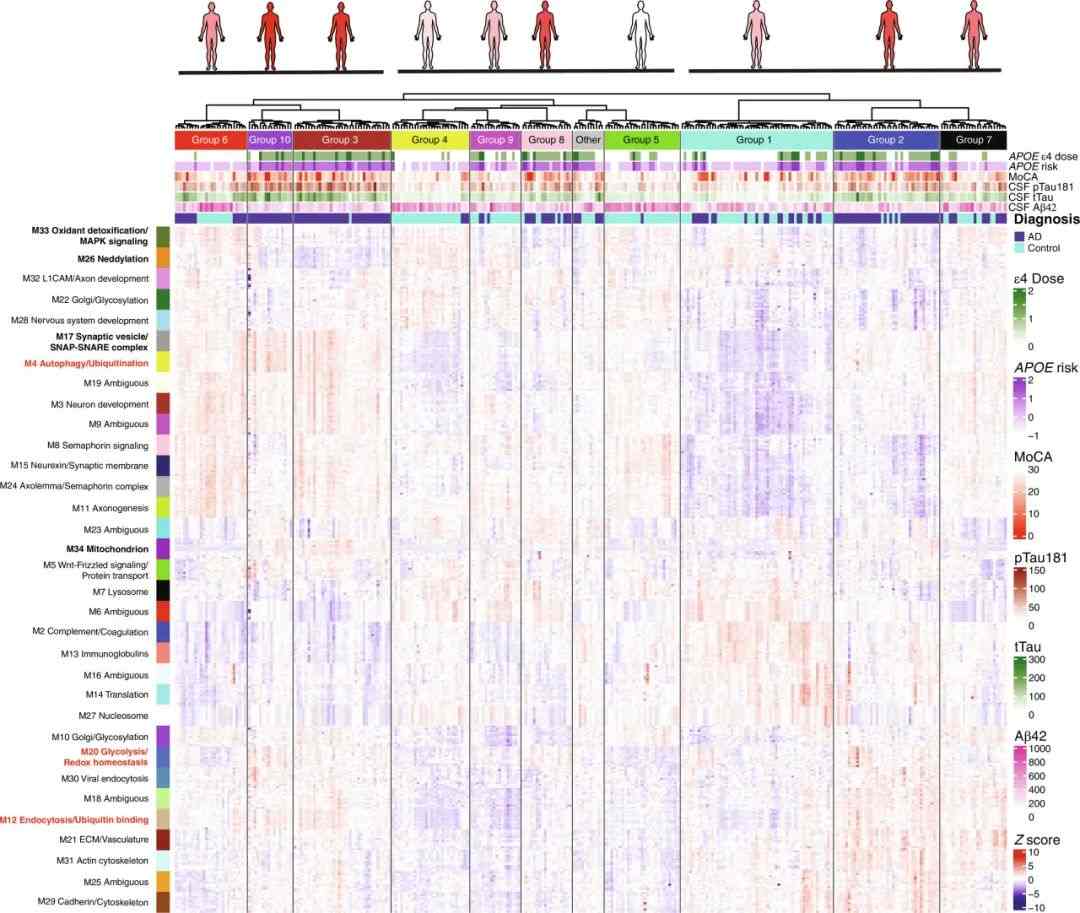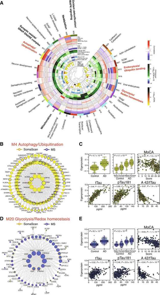 这使得研究团队能够构建图谱,以同时搜索多种类型蛋白质中的模式,这些模式综合起来可以为阿尔茨海默病提供早期标志物。研究团队开发了 34 个模块用于测试。