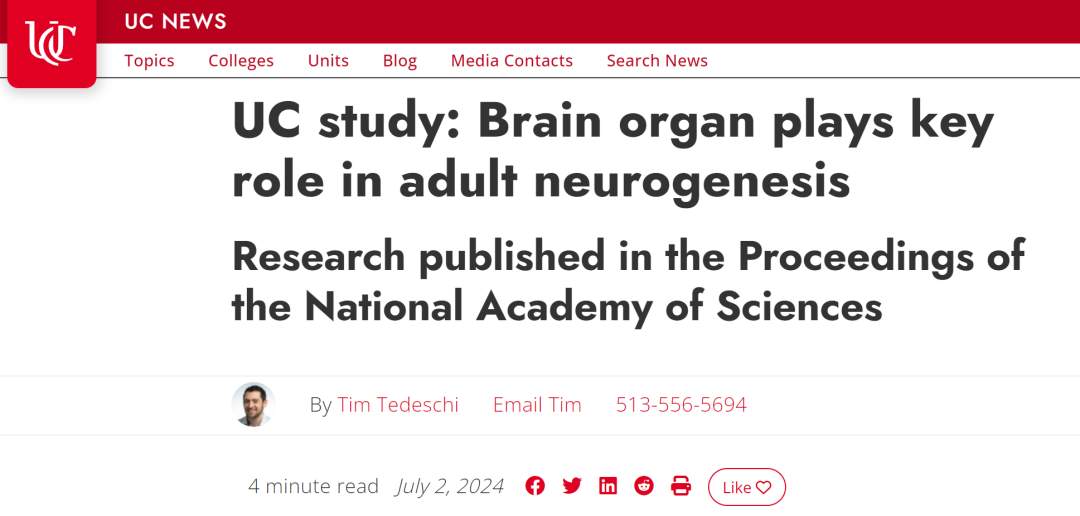 辛辛那提大学(University of Cincinnati,UC)的这项研究近日在线发表在《美国国家科学院院刊》(Proceedings of the National Academy of Sciences)上,旨在更深入地了解成年大脑如何产生新的神经元来修复受损组织。