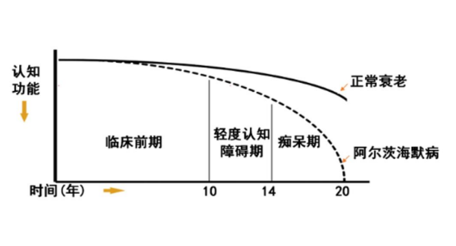 认知下降,是AD的典型特征,但它同时也是自然衰老的特征之一,两者之间的最大区别在于AD会加速认知下降的速度。即使如此,但这种认知下降也是一种极为漫长的过程,很可能长达二十年时间,如此长的时间跨度造成了人类攻克AD的道路举步维艰。