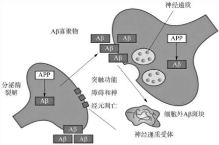 这种假说认为,在正常生理条件下,Aβ的生成与清除处于一个动态平衡的过程,但在病理情况下,Aβ生成增多或者清除减少,导致平衡被打破。Aβ过度沉积在脑内从而引起了一系列的病理过程,这些病理过程反过来又使Aβ增多,形成了级联式的放大效应。