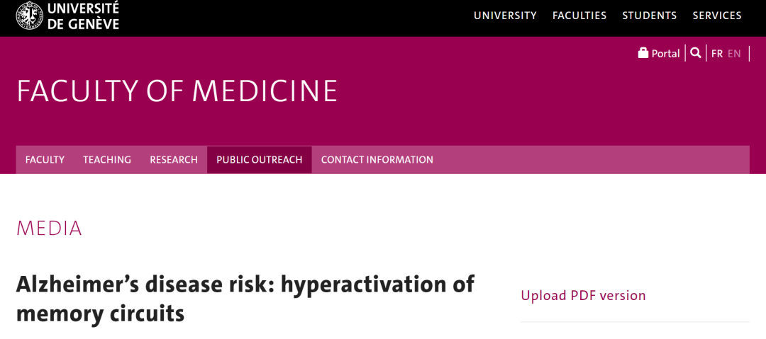 原文标题 : 阿尔茨海默病风险:记忆回路的过度激活