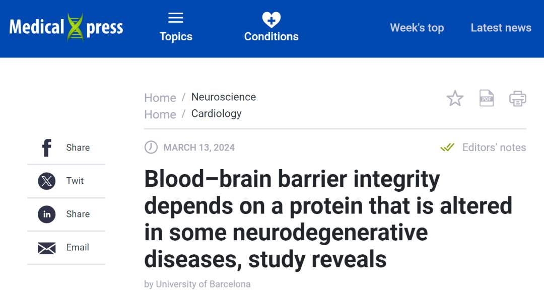 未经允许不得转载:医械工坊资讯 » 血脑屏障的完整性依赖于一种在某些神经退行性疾病中会发生改变的蛋白质