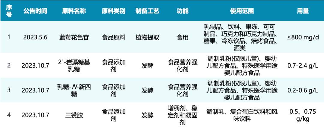 2023年NMPA批准的糖类食品原料如下: