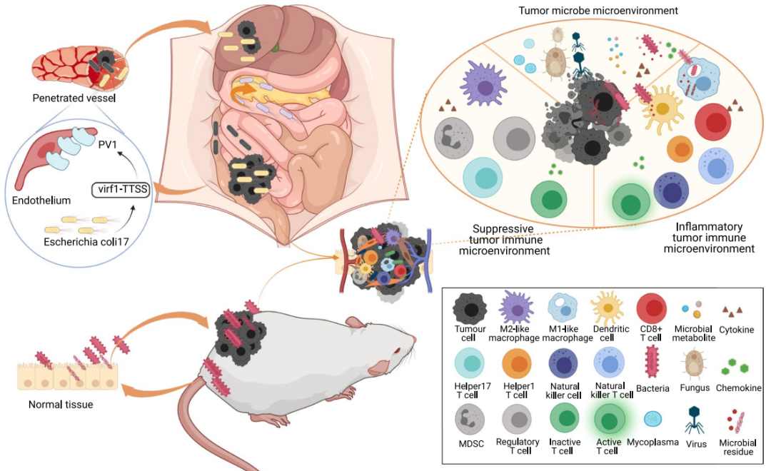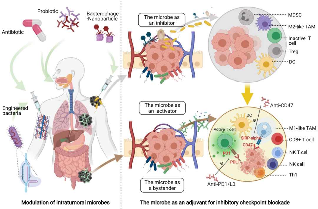 肿瘤免疫治疗的疗效在很大程度上取决于肿瘤微环境,尤其是肿瘤免疫微环境。新的研究表明,微生物存在于肿瘤细胞和免疫细胞内,表明这些微生物可以影响肿瘤免疫微环境的状态。