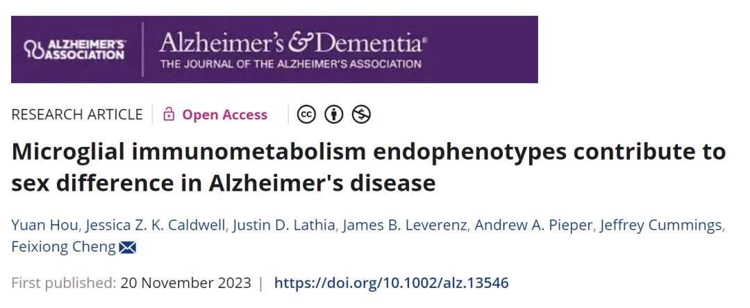 Hou, Y, Caldwell, JZK, Lathia, JD, et al. Microglial immunometabolism endophenotypes contribute to sex difference in Alzheimer's disease. Alzheimer's Dement. 2023; 1-16. https://doi.org/10.1002/alz.13546