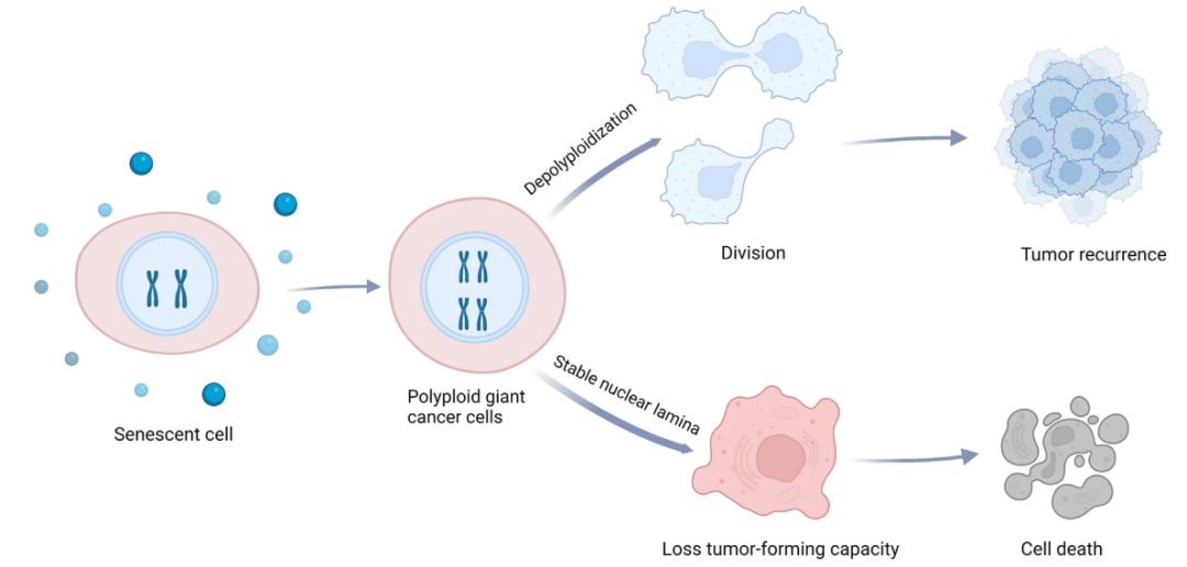 多倍体最初是阻止SNC进一步扩张的障碍。癌细胞可以经历有丝分裂滑移,导致细胞进入G1期,但没有完全完成有丝分裂和胞质分裂,形成巨大的多倍体多核细胞。最终,这些巨大的癌细胞停止复制并积累成多倍体SNC,而没有形成肿瘤的能力。