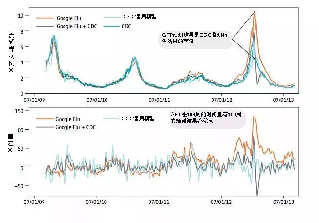 但由于谷歌的数据来源是用户的搜索行为,当有某些事件发生影响用户搜索时,结果就会发生极大的偏差,同时谷歌当时在数据分析方面还存在欠缺,例如未剔除系统误差等。
