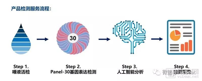 然而,研究发现,肿瘤释放的诸如生长因子等生物标记物由于其可以影响唾液转录谱发生变化,因而可以通过间接分析唾液转录谱的变化来准确得出病变的情况。基于此,恺尔生物利用唾液中的间接生物信息进行疾病筛查,通过纯化的唾液RNA以及多种基因定量分析技术进行靶标基因表达检测,并运用人工智能分析、对比唾液细胞的基因表达谱的变化,最终发现肿瘤及其来源。