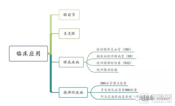 当然,OCT-A的眼科临床场景远不止于DR早期筛查,包括青光眼、眼底疾病、视神经疾病等多个眼科疾病大类,OCT-A都能有较为广阔的应用空间,如下图所示: