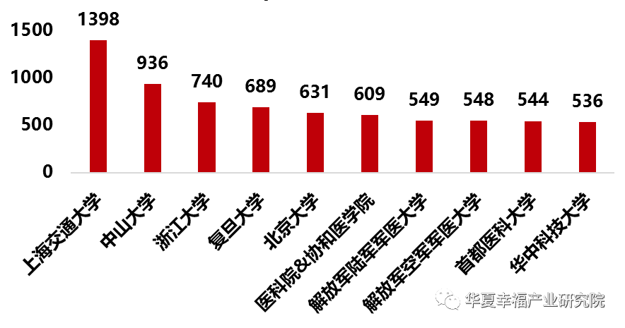 从论文发表机构来看,上海交通大学、中山大学、浙江大学、复旦大学位列前四位,其中上海交通大学、浙江大学以及复旦大学均属于长三角城市群,长三角的名校干细胞理论研究的基础十分雄厚;前十名中,医学类院校占据40%,由此可见医学尤其是临床治疗对于干细胞技术有着强烈的兴趣。