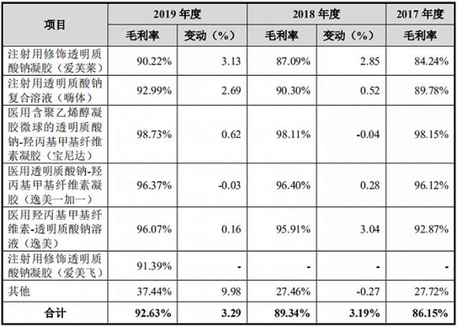 图1:爱美客过去3年毛利率数据。来源:招股书