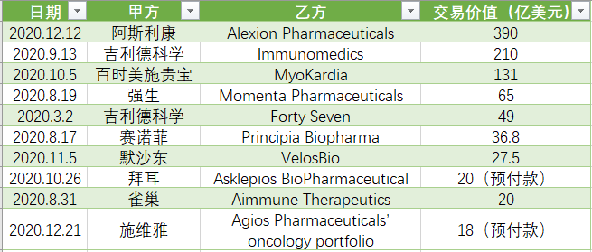 未经允许不得转载:医械工坊资讯 » 2020年生物制药10大并购交易