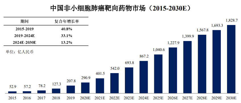 中国非小细胞肺癌靶向药市场2019年至2024年的复合年增长率或达33.1%。