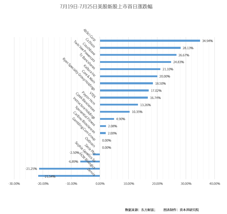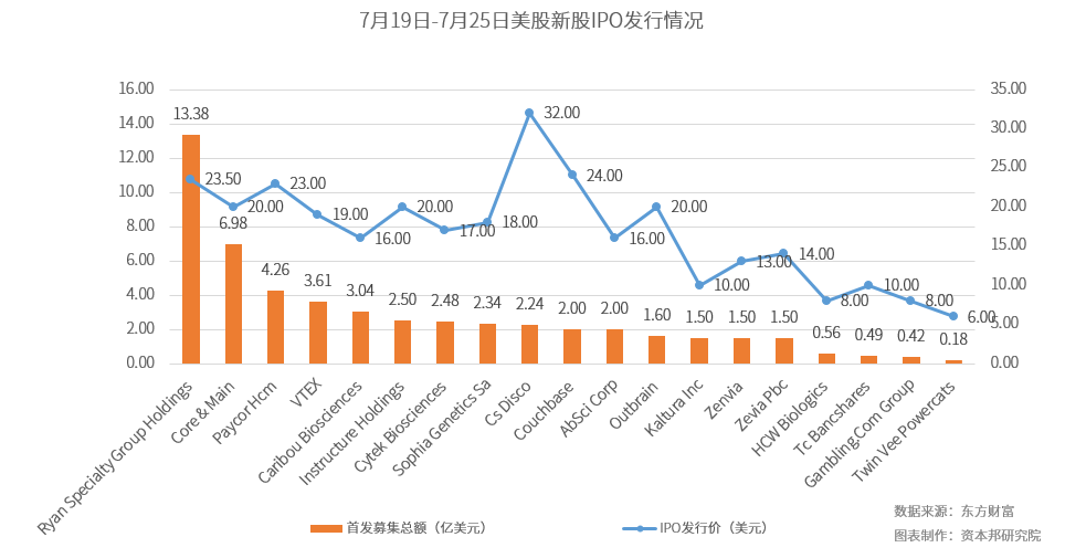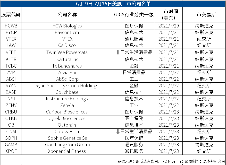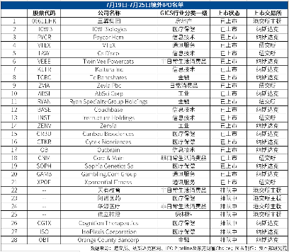 上周(7月19日-7月25日),共有1家公司在港股上市。20家公司在美股上市,其中无中概股。