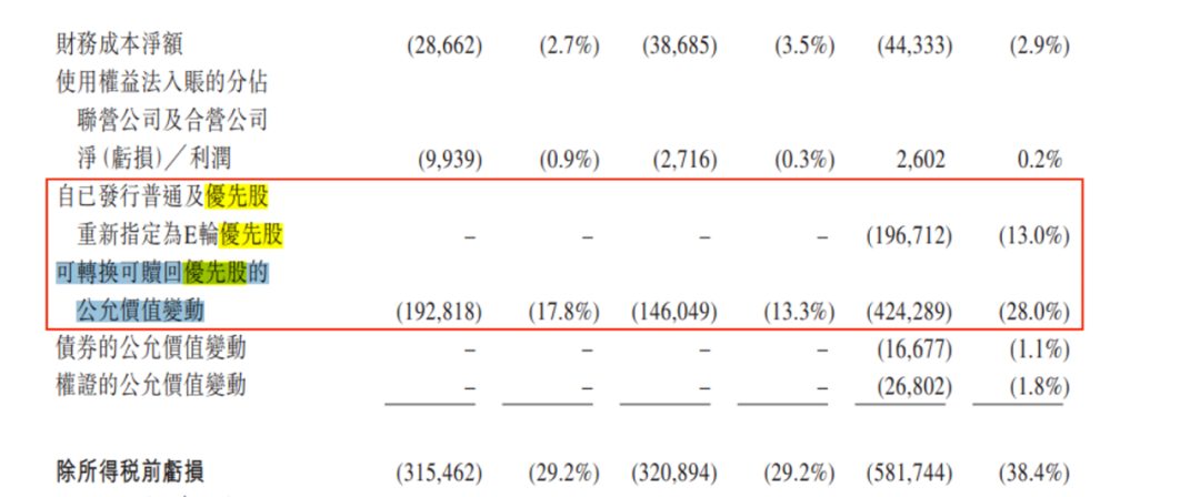 如此一来,可赎回优先股便不得不被指定为以公允价值计量且其公允价值变动计入当期损益的金融负债,截至2021年5月末,可转换可赎回优先股总额为36.09亿元,一季度该金融负债由于公允价值变动减损的企业利润为4.24亿元,已达收入的28%。