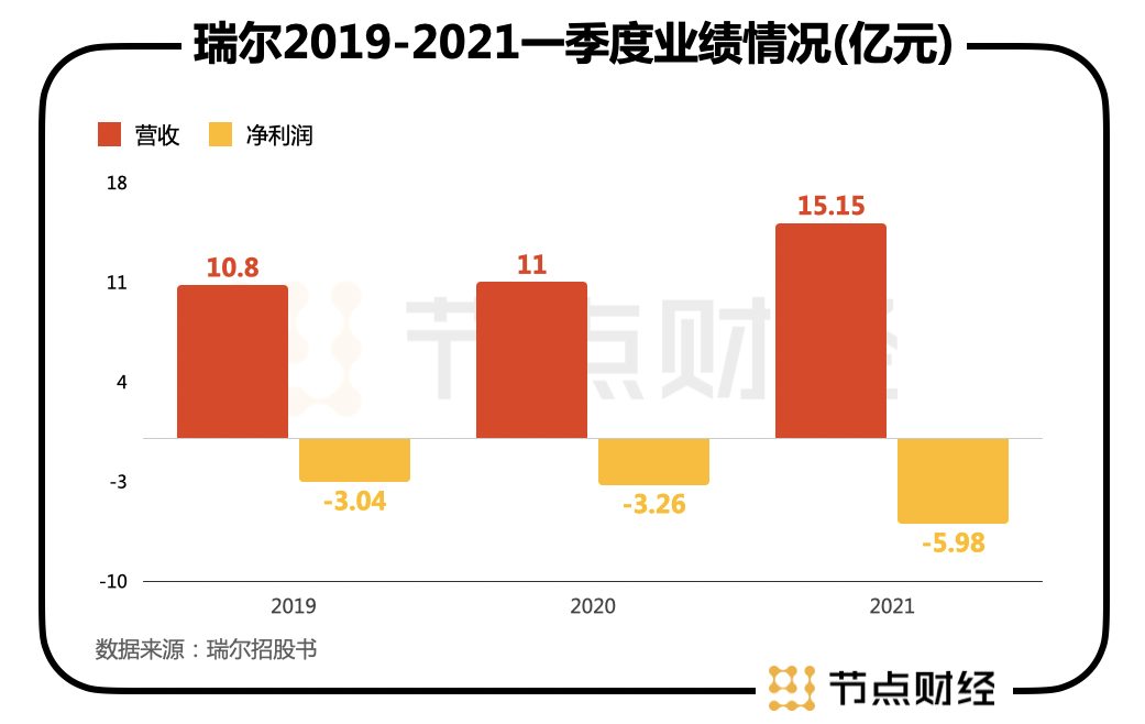 报告期内,瑞尔营业收入持续增长,从10.8亿上升至15.15亿元,但与之形成反比的是,净利润亏损缺口连年扩大,分别为-3.04亿、-3.26亿及-5.98亿,三年合计亏掉近12亿元,令人大跌眼镜。