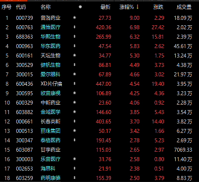 此外,截至发稿,中证医药卫生指数今日上涨1.74%,板块个股涨多跌少。