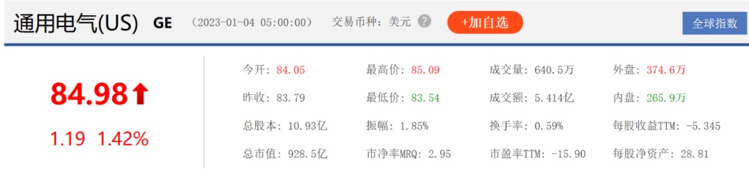 对GE医疗来说,他们高达310亿美元的估值,可明显提升母公司GE的市值。尤其是新股上市后,股价会出现连续上涨的情况,这为GE获得了更高股权的估值溢价,而这部分收益能够直接体现在资产负债表中,有利于GE的股价上涨。截止2023年1月4日,GE股价持续上涨,总市值928.5亿美元,而2022年12月20日收盘的总市值为852.9亿元美元。10多天的时间,市值飙升近70亿美元。