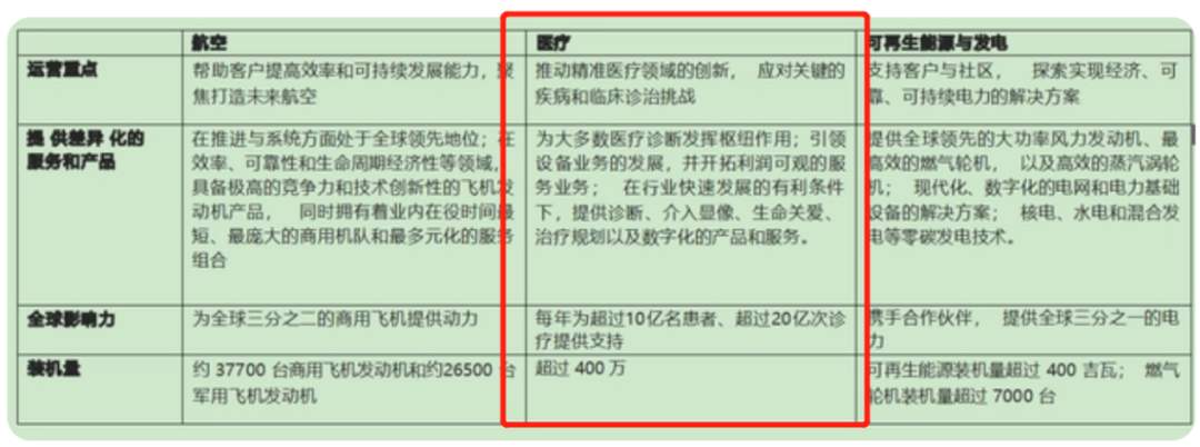 2021年11月,GE宣布将分拆其医疗业务,这也是GE一分为三的计划之一,另外两个分拆业务分别是航空航天业务以及电力和可再生能源业务,作为一家全球雇员超过31.5万人的超级公司,分拆需要一定时间,预计要到2024年初才能全部拆分完毕。除自身专注航空航天业务之外,大致计划为2023年分拆医疗健康业务,2024年分拆能源业务。