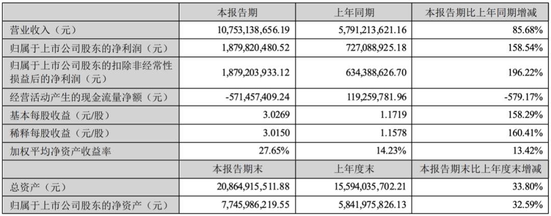 万泰生物的净利润增速和净利润率都很高。上半年实现营业收入59.3亿元,同比增长201.92%;净利润26.9亿元,同比增长273.24%。赚钱赚地猛,主要是公司的二价HPV疫苗销量增加,收入和利润实现了高速增长。同时,因国内外新冠肺炎疫情的影响,公司的新冠原料和新冠检测试剂的收入和利润实现了快速增长。