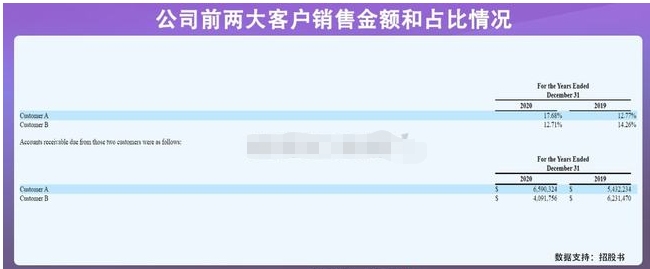 美华国际在招股书中披露,报告期内,公司仅前两大客户就占比营收超10%,2020年分别占比17.68%、12.71%,大客户占比不降反增,无形中增大了风险。与此同时,前五大客户集中度同样不降反增,占比营收由2019年的46.87%增至2020年的53.47%。这意味着美华国际一旦不能有效拓展新客户或维持现有客户关系,都有可能给业绩带来巨大波动的风险。