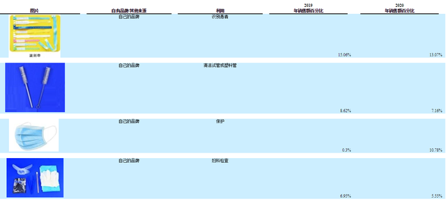 美华国际营收占比最大的为一次性识别带、一次性口罩、一次性医疗刷和一次性妇检包,分别为13.07%、10.78%、7.16%和5.55%,是营收占比前四的品类。