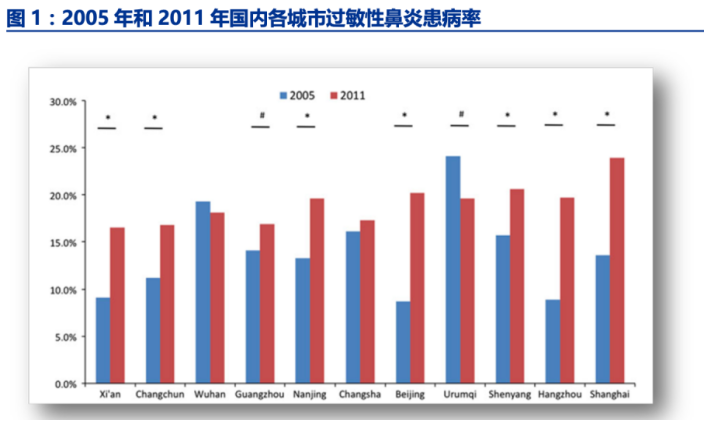 与此同时,过敏性鼻炎已成为儿童期主要的呼吸道炎性疾病之一,患病率高达15.79%。它通常和哮喘具有相同的过敏原,也是儿童哮喘病发病的重要因素。如能在发病早期对过敏性鼻炎采取有效的防治措施,则可以改善共存的哮喘,减少哮喘的反复,甚至可以避免哮喘的发作。