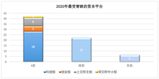 手册显示,2020年70家新上市的生物医药企业中,A股占42家,港股占22家,美股占6家。 联交所18A章的推出以及科创板注册制的落地和持续升温,为生物医药企业的IPO提供了更加便捷高效的通道。