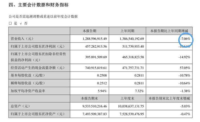 1-6月上市公司营收同比下降-7.06%,扣非净利润同比下降-14.92%(对应扣非净利润跌幅,散户应该开心期待明天开盘股价下跌-4.92%,利空落地)。