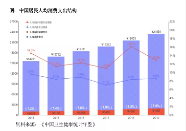 人口老龄化方面,第七次人口普查结果发布,65岁以上人口占比超过13.50%,人口老龄化程度进一步提升,进入中度老龄社会;居民消费升级方面随着人民生活水平的提升和居民保健意识的增强,居民正在从保障基本医疗向享受高端医疗转化。