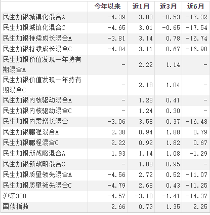 综合来看,民生加银基金旗下的产品业绩也有一定的差距。