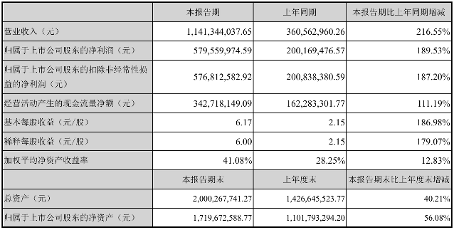 挖贝网8月11日,明德生物(002932)近日发布2021年半年度报告,报告期内营业收入1,141,344,037.65元,同比增加216.55%;净利579,559,974.59元,同比净利增加189.53%。