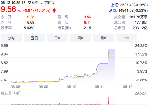 C114讯 8月12日消息(南山)今天A股开盘,中天科技(600522)股价迅速上涨,几分钟就封涨停,截止发稿,封单超过14万手。这是中天科技股价连续第二天涨停。