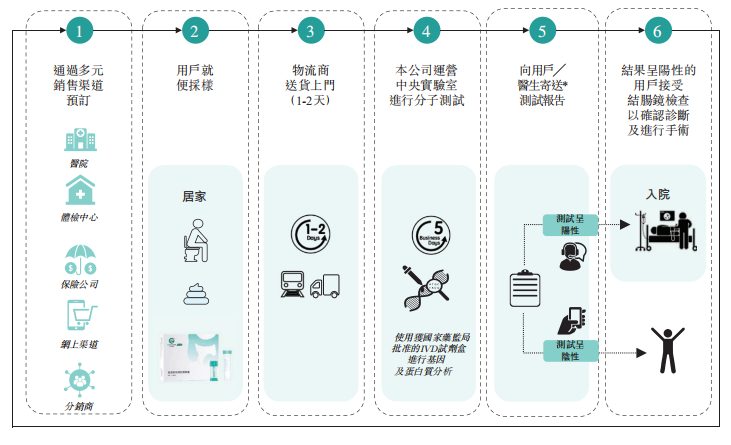 据公司在2019年10月至2020年9月期间所收集的营运数据,公司专有的DNA提取技术帮助公司在高复杂性的粪便样本中纯化可评估的DNA,成功率高达约99.4%。其专有的DNA样本稳定技术可将DNA及血红蛋白于室温状态下保存长达七日,这便于公司通过常规物流商在全国各地收集粪便样本并运送至各个中心测试实验室。