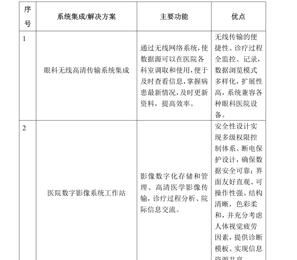 眼科无线高清传输系统集成、眼科大数据云端存储系统集成、医学数字影像工作站安装、维护。