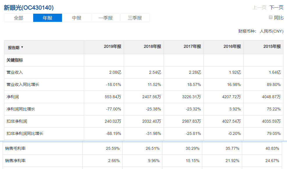新眼光2005 年成立,2012年挂牌新三板。目乐医疗的老板也曾经在新眼光工作过。新眼光(OC:430140)的业绩如何呢?