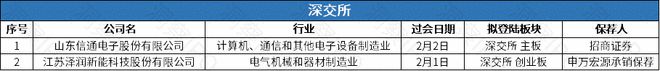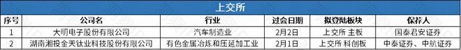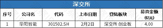 1月29日-2月4日,上交所主板有1家公司上市;深交所创业板有1家公司上市。